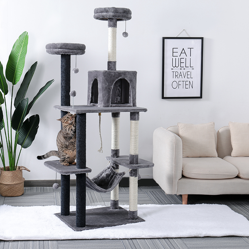 1.Multi-functional cat toy—it include car scratching post,cat house,cat hammock,cat ball toy