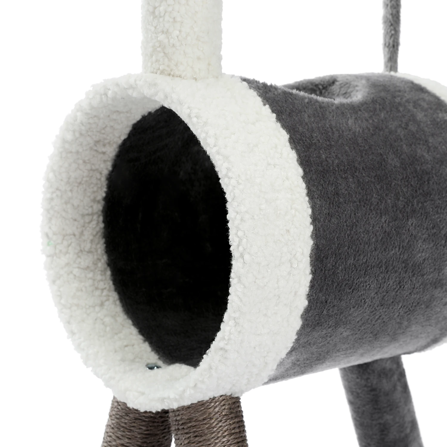 MULTIFUNCTIONAL DESIGN: This cat tree is not only good-looking, but also has multiple choice for kitten to play. Such as a large cat tunnel, 3 scratching posts and an amusing furball. Jumping up and down is also an exercise way for cat’s health.